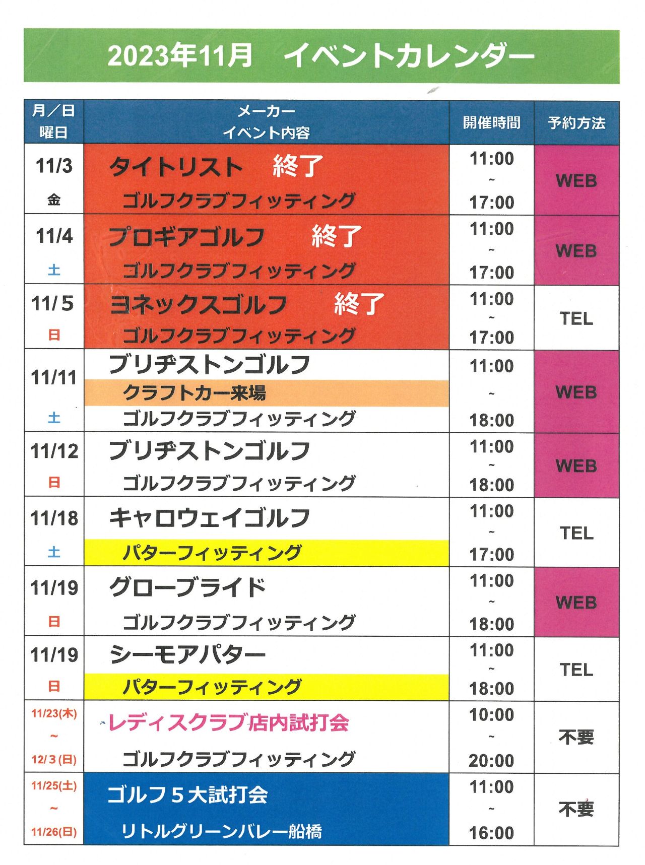 【試打会/パターフィッティング会】イベント情報(更新版)