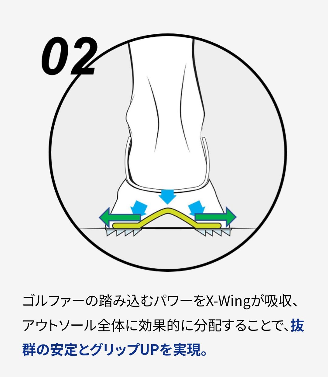 踏み込むパワーをX-Wingが吸収し、
