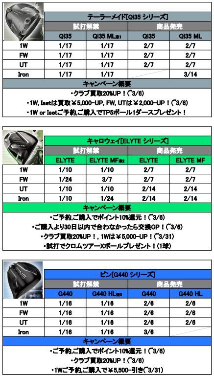 とうとうテーラーメイド、キャロウェイ、ピンの新作情報が出そろいましたね!