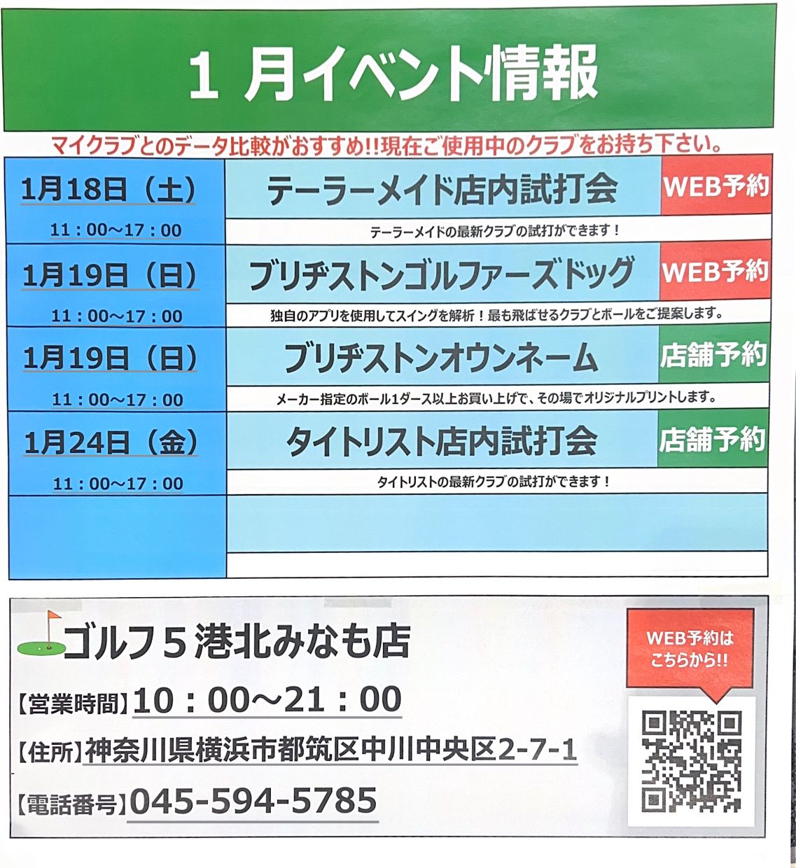 ゴルフ5港北みなも店 1月イベントスケジュール!!