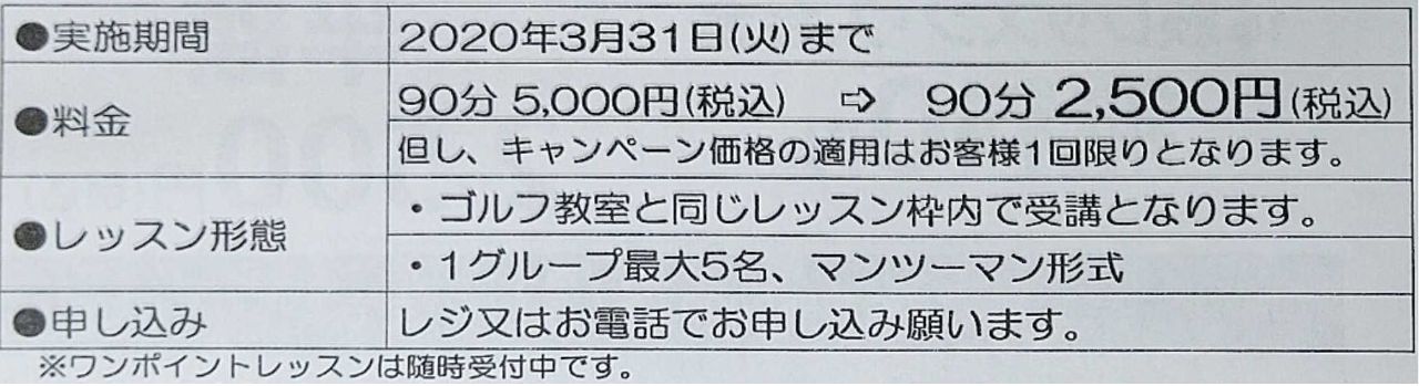 2、ワンポイントレッスン 「 半額 」キャンペーン実施中!