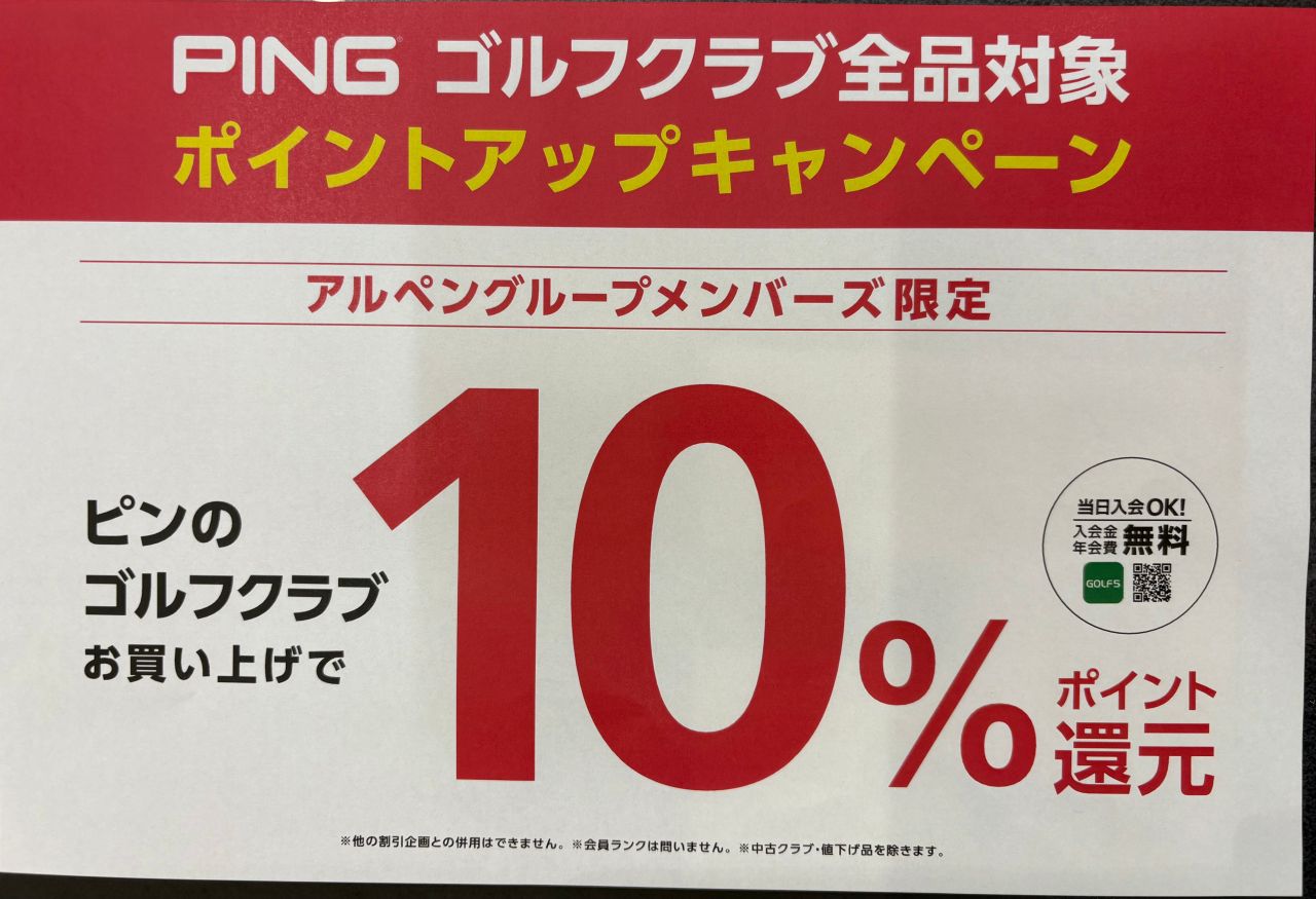 ピンのクラブをご購入で、アルペンポイント一律10%還元‼