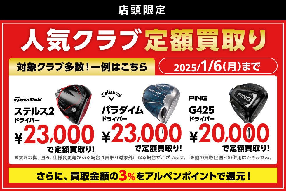 対象クラブを定額買取りいたします!