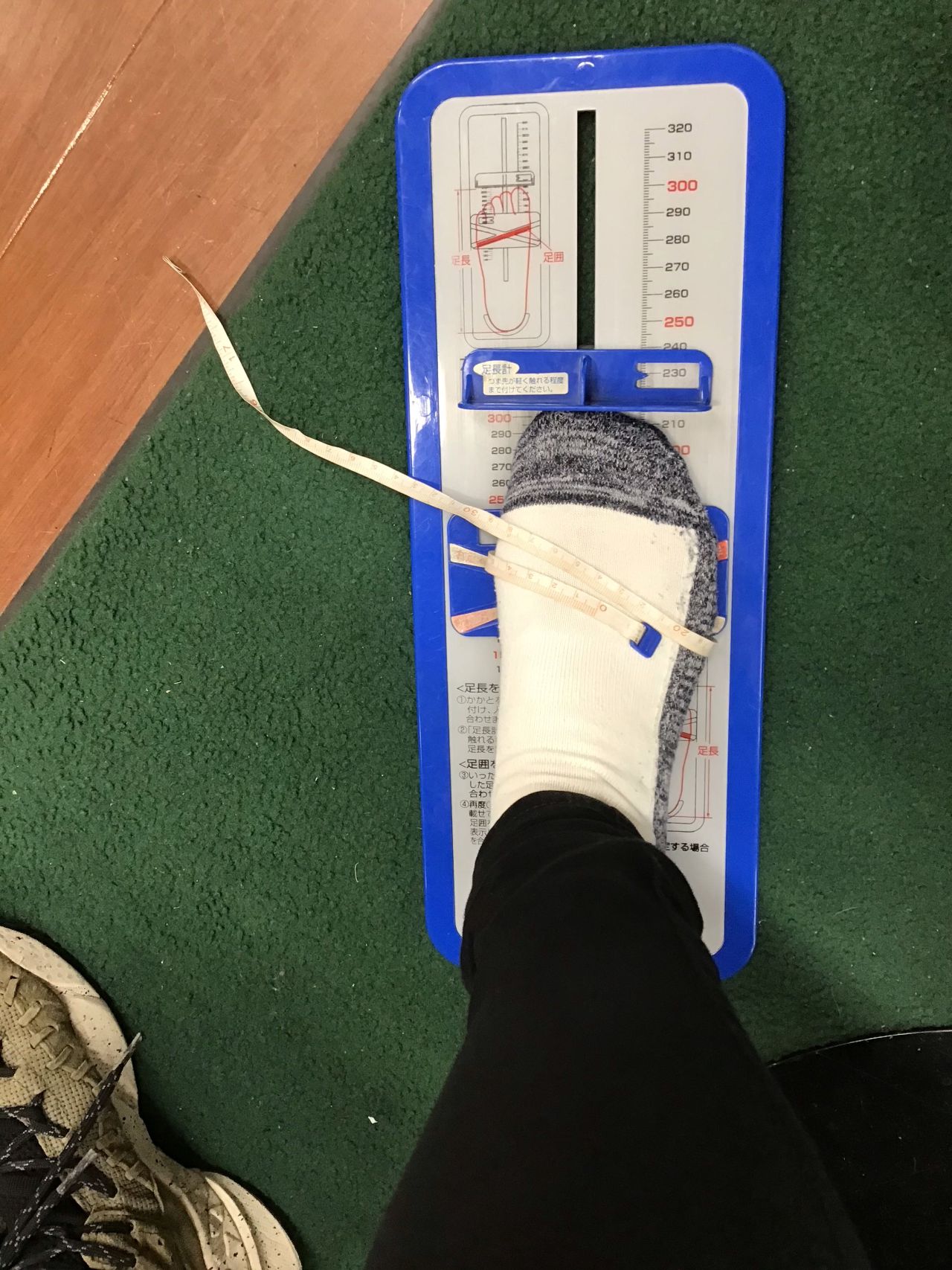 ①足型測定器を使用して、足型の測定