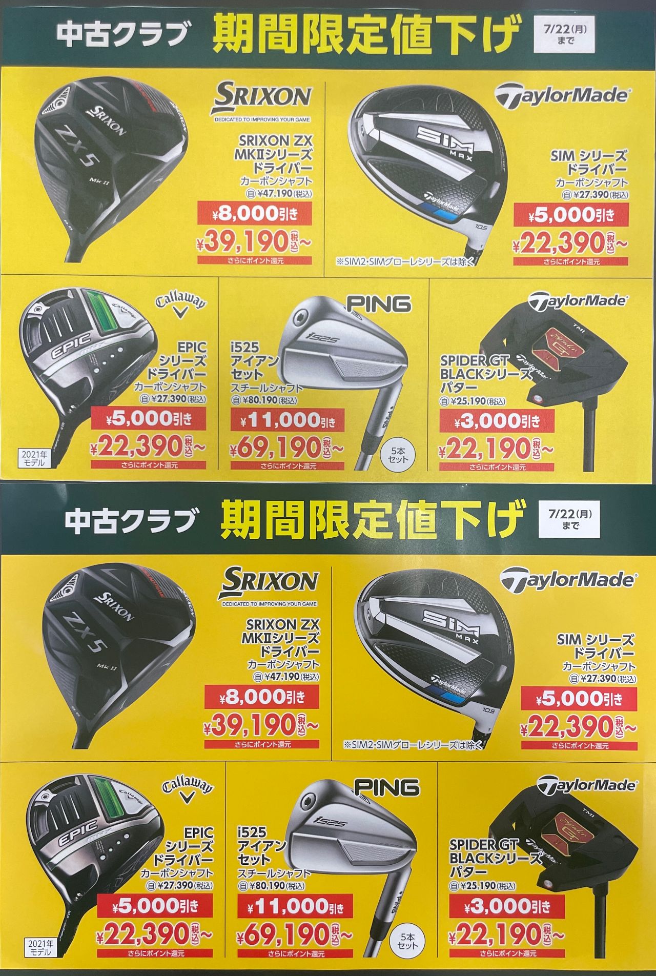 [期間限定] 割引企画のお知らせ -中古クラブ&ティゴラ商品