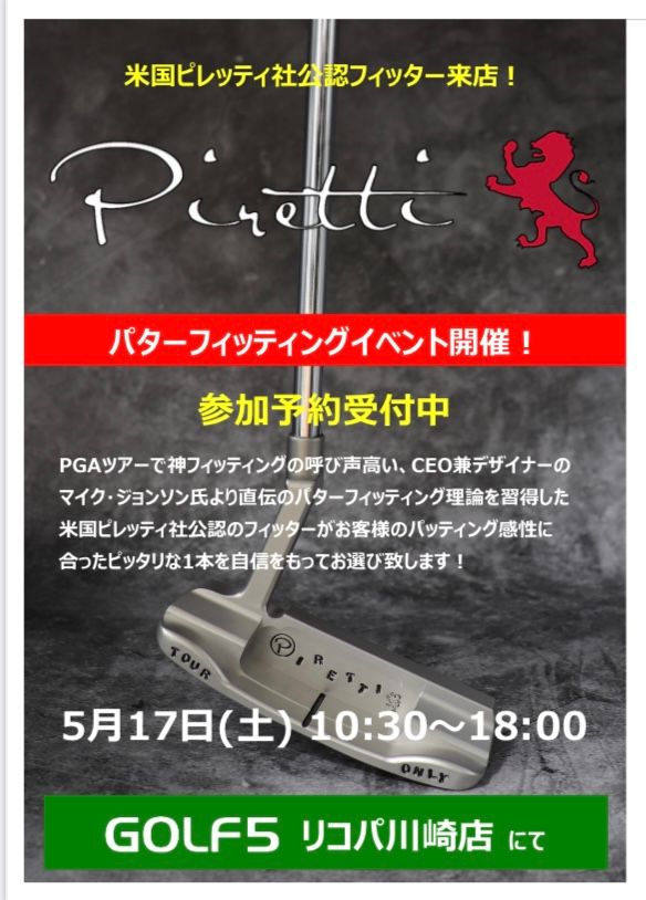 今回は、プロゴルファーのフィッティングも行っているフィッターがリコパ川崎店にやってきます!