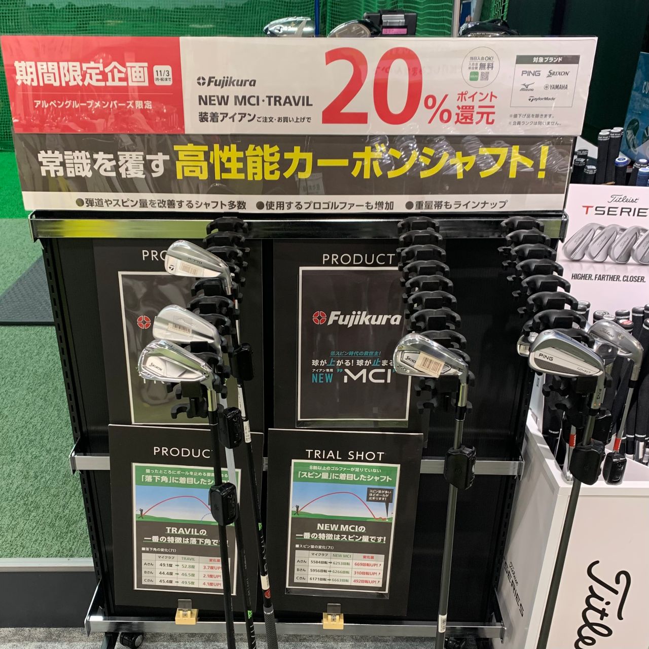 - 企画内容:対象シャフト装着のアイアンセットご購入で、アルペンポイント20%還元