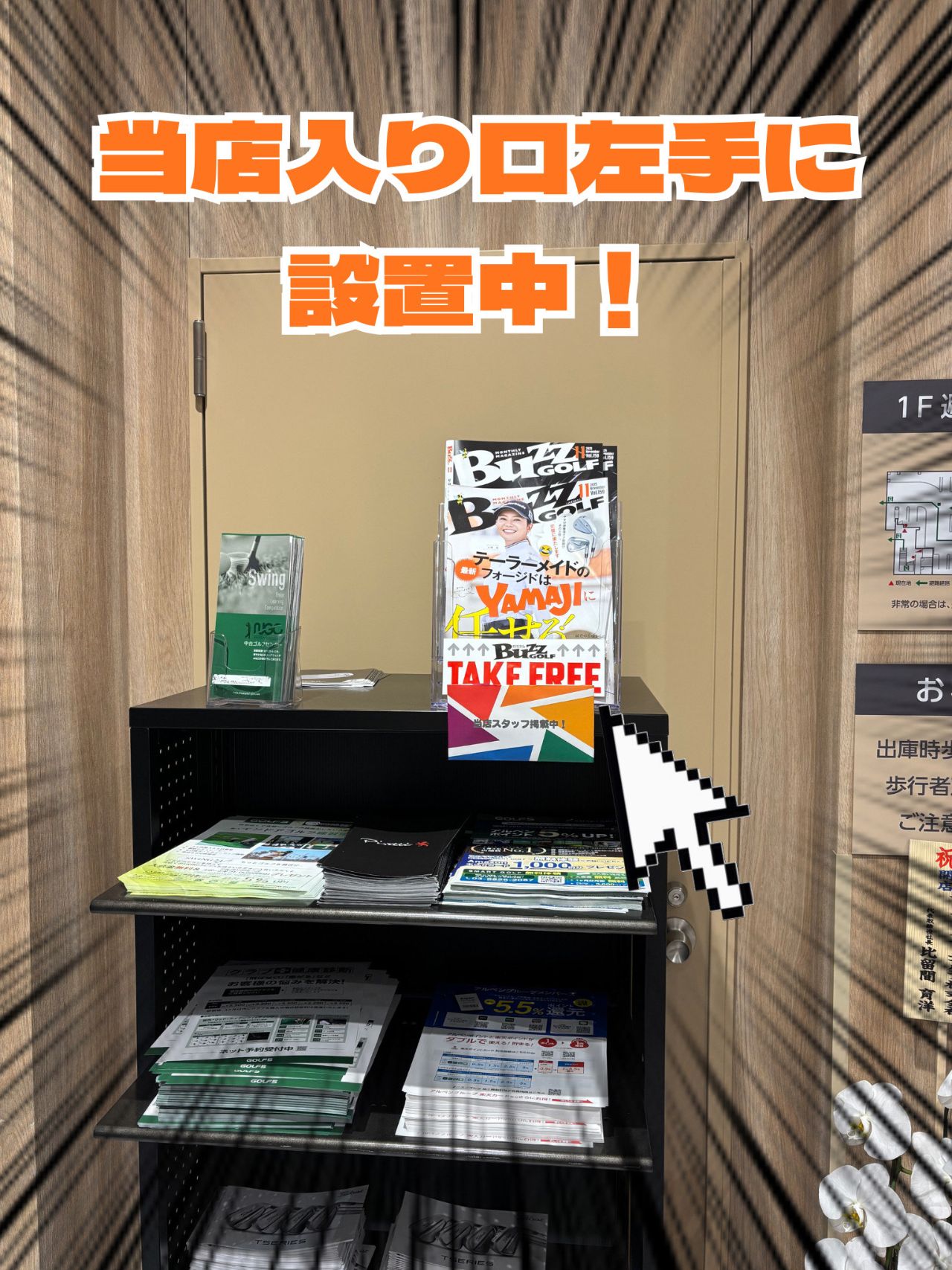 こちらの『BAZZ GOLF』は当店入り口左手に設置されていますので、