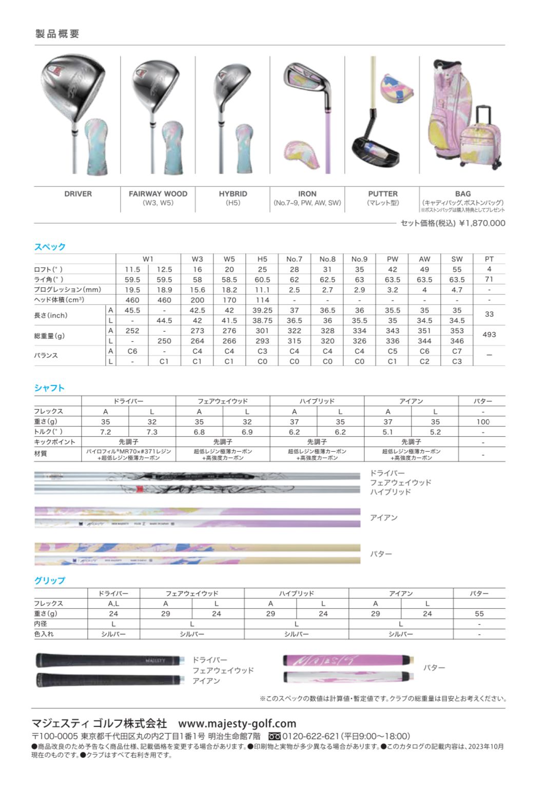 クラブはMAJESTY PRESTIGIO XII Ladies’の仕様。