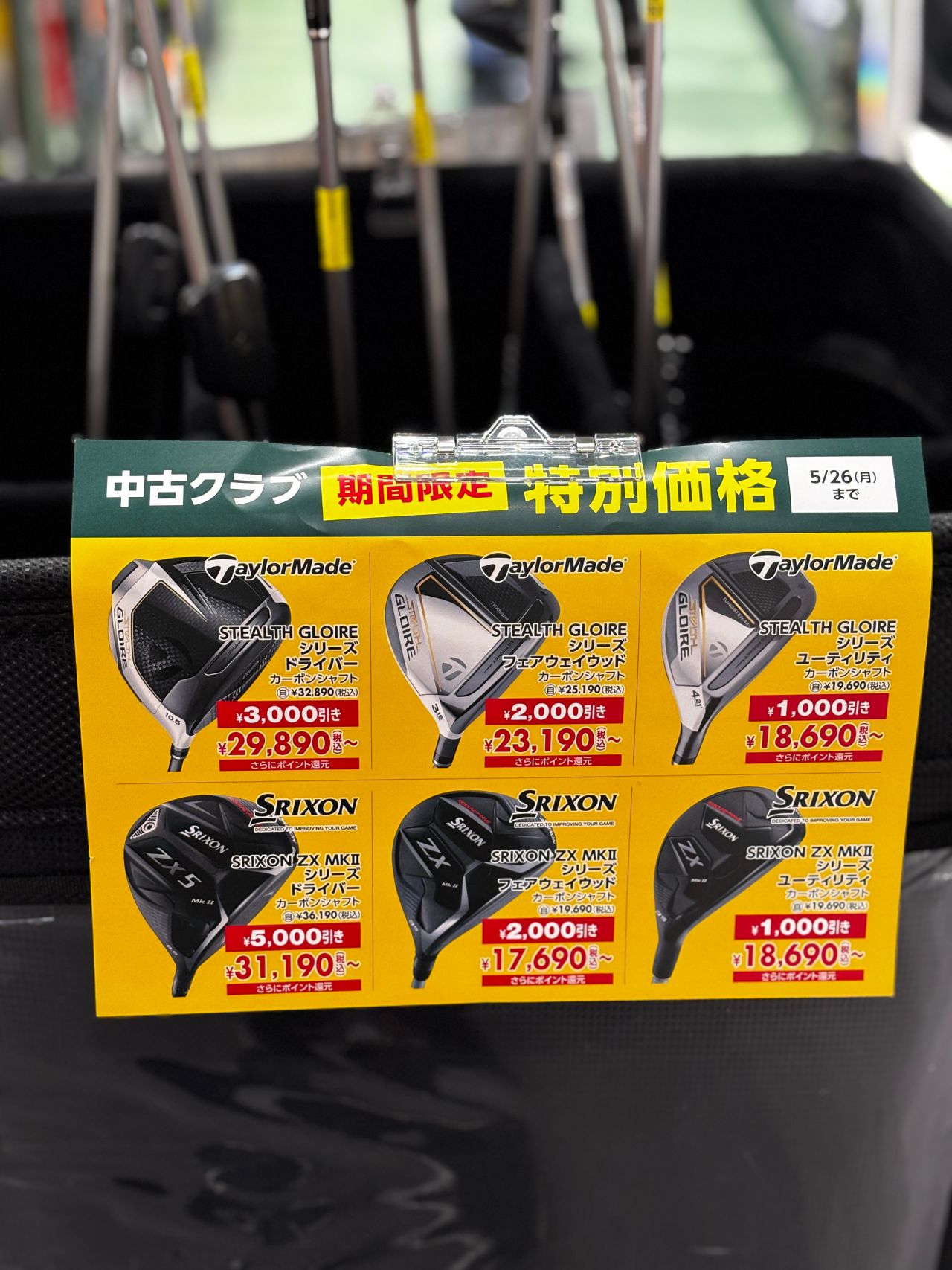 ・対象の中古クラブが”期間限定”値下げ