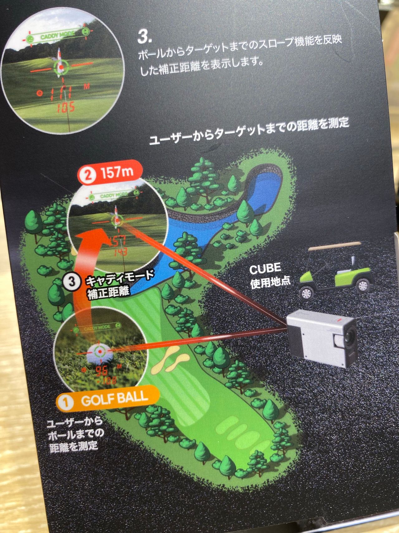 カートからボールまでの距離を測定し、