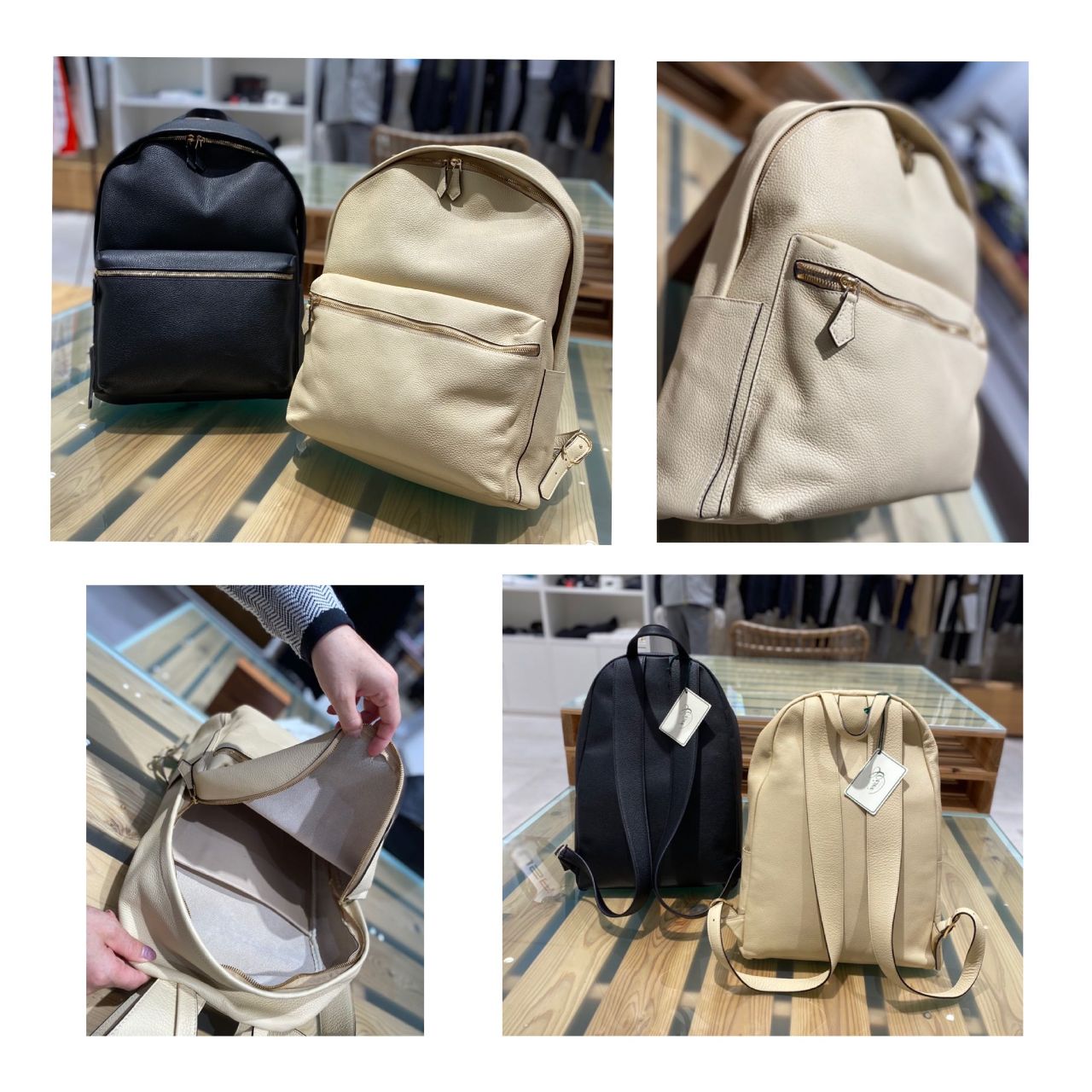 リュックは肩に当たる部分も牛革製なので
