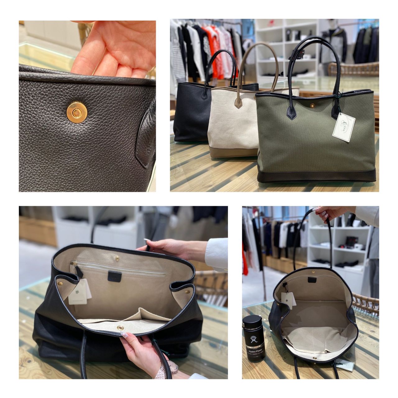 トートバッグは男性が肩掛けできるサイズ感で、