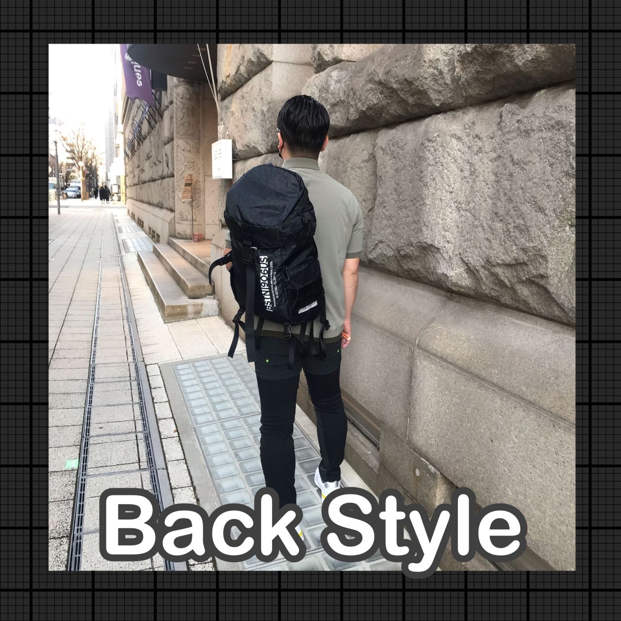 ブラック×ブラックのコーディネートですが、