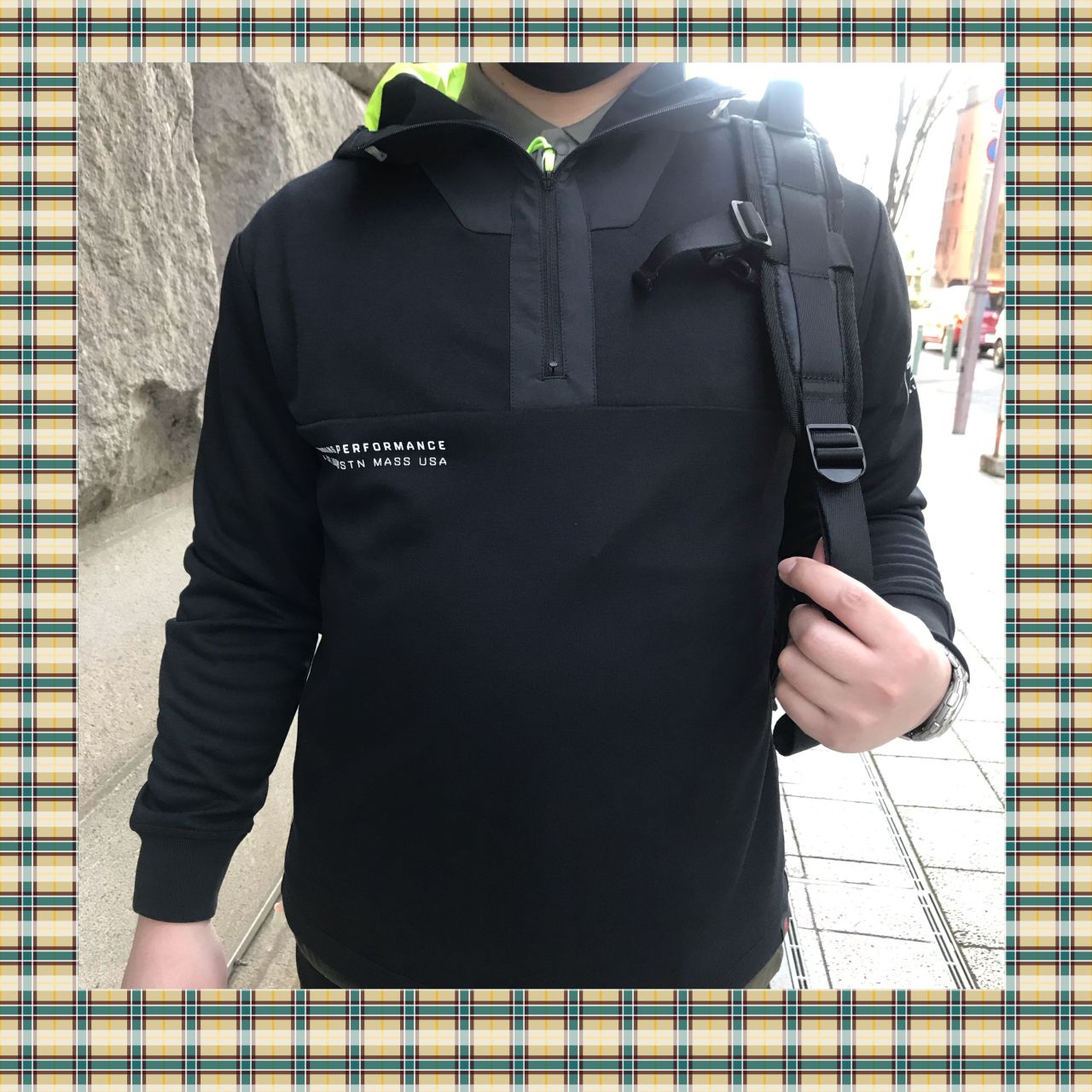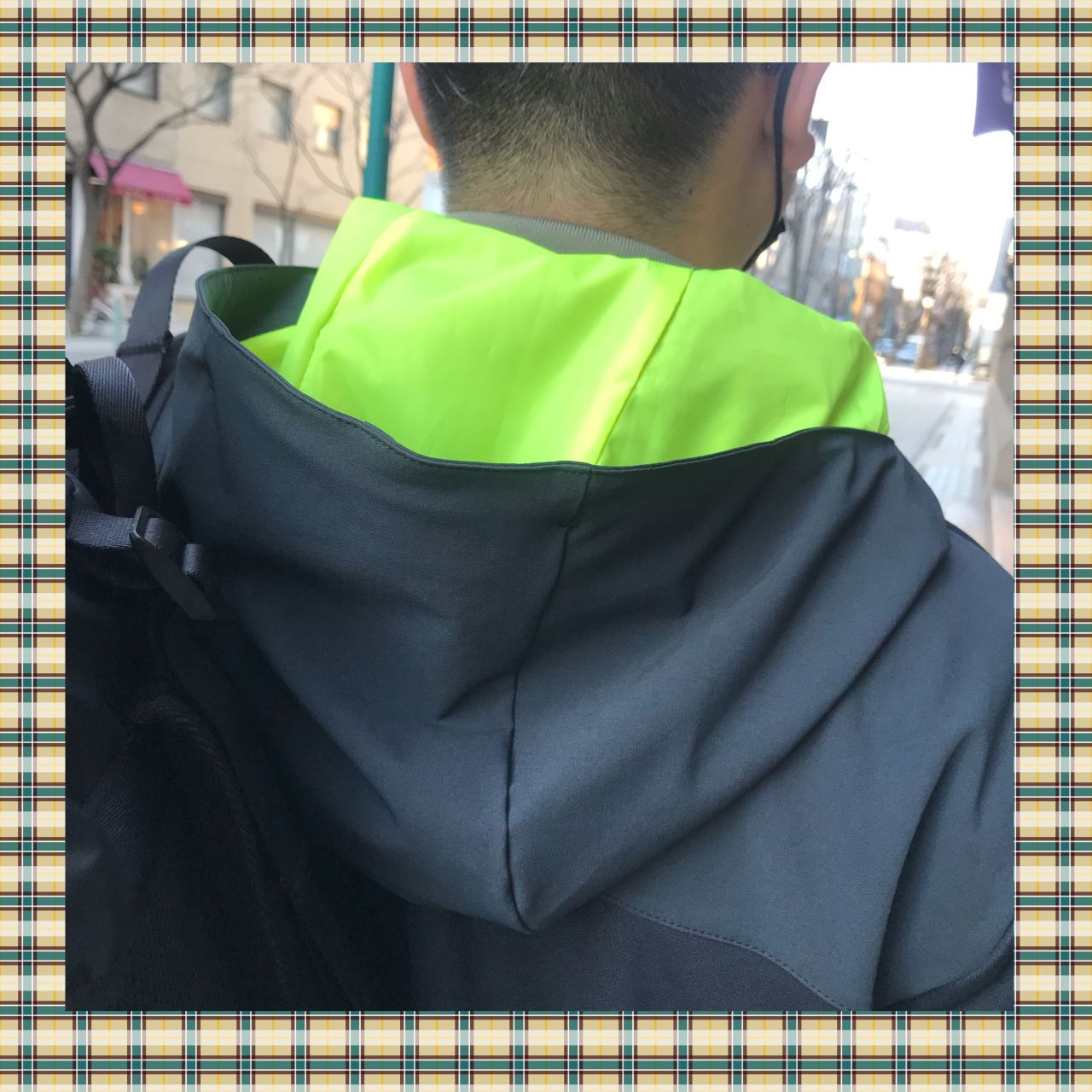 フーディの部分がネオンカラーの黄緑がアクセントになり、重くならずオシャレさが際立ちます☺︎❕❕