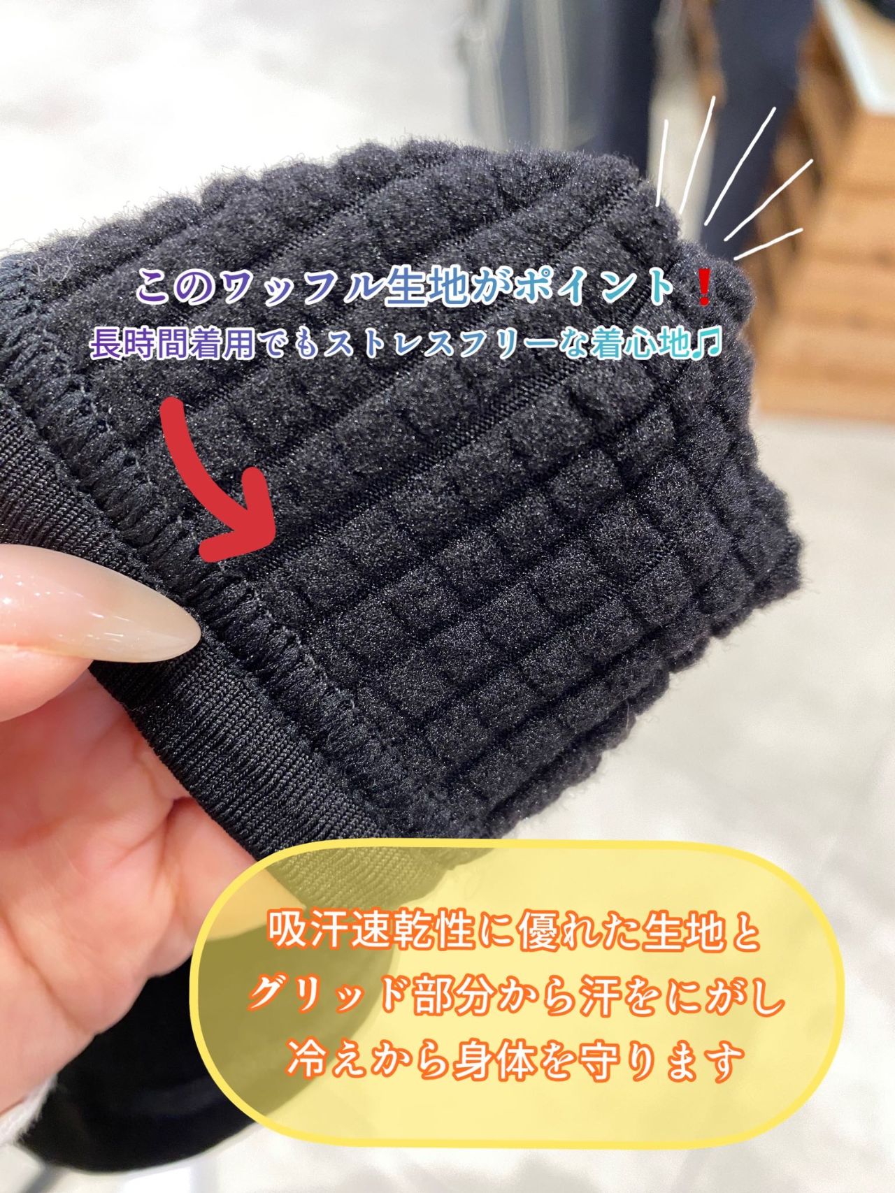 吸汗速乾性に優れた生地とグリッド部分から汗を逃すことで汗による冷えから身体を守ります⭐️