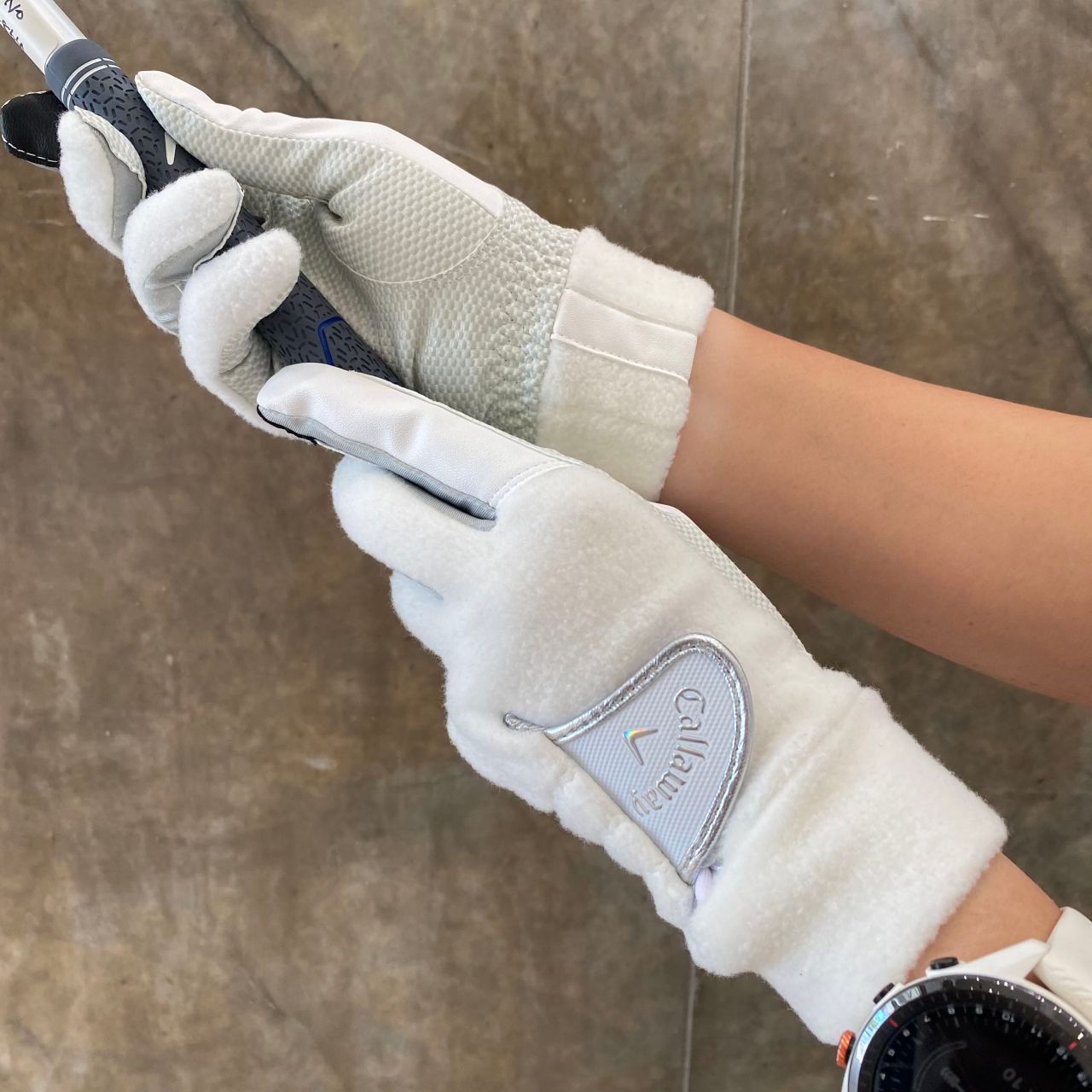 手首のフリース素材との組み合わせで