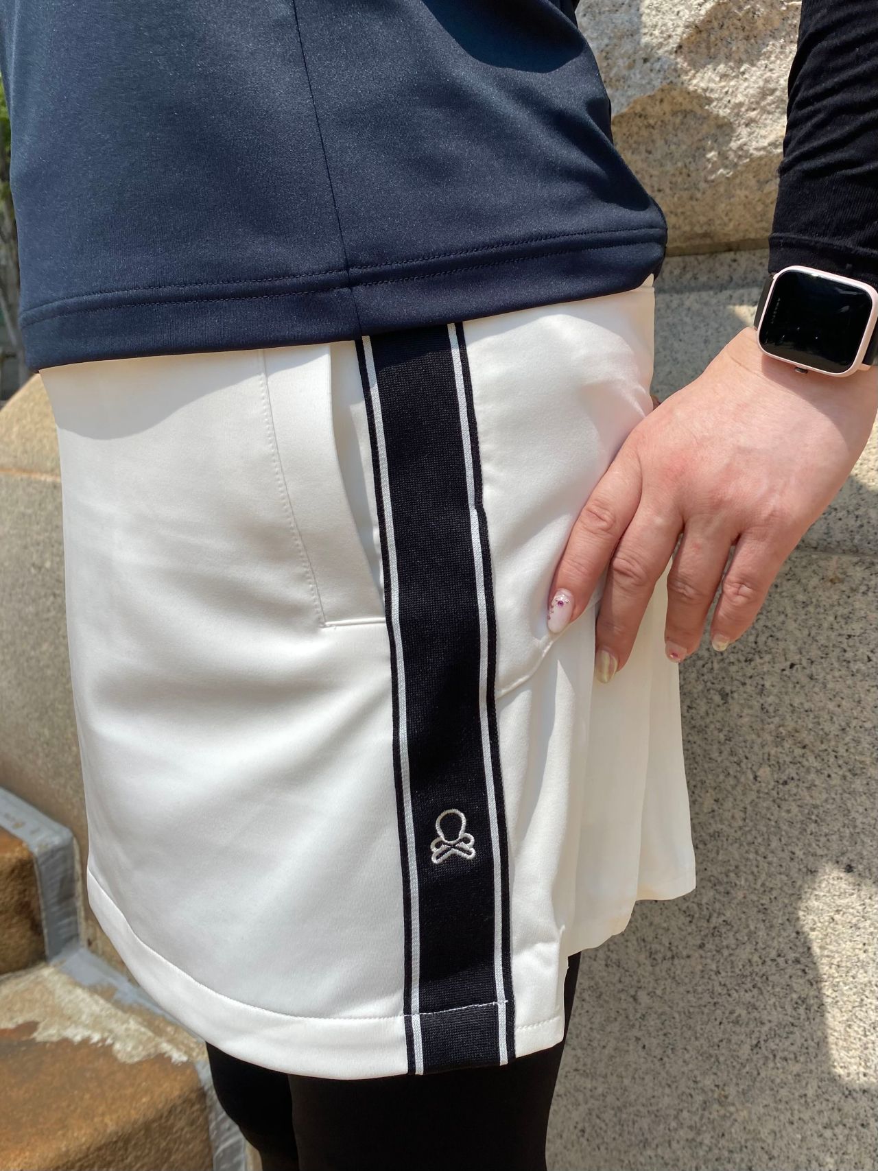 美しいシルエットと機能性を両立した、サイドの配色ラインが特徴的なトラペーズスカートです✨