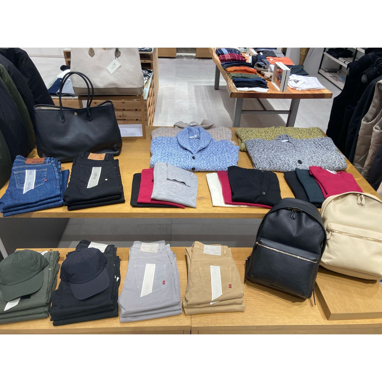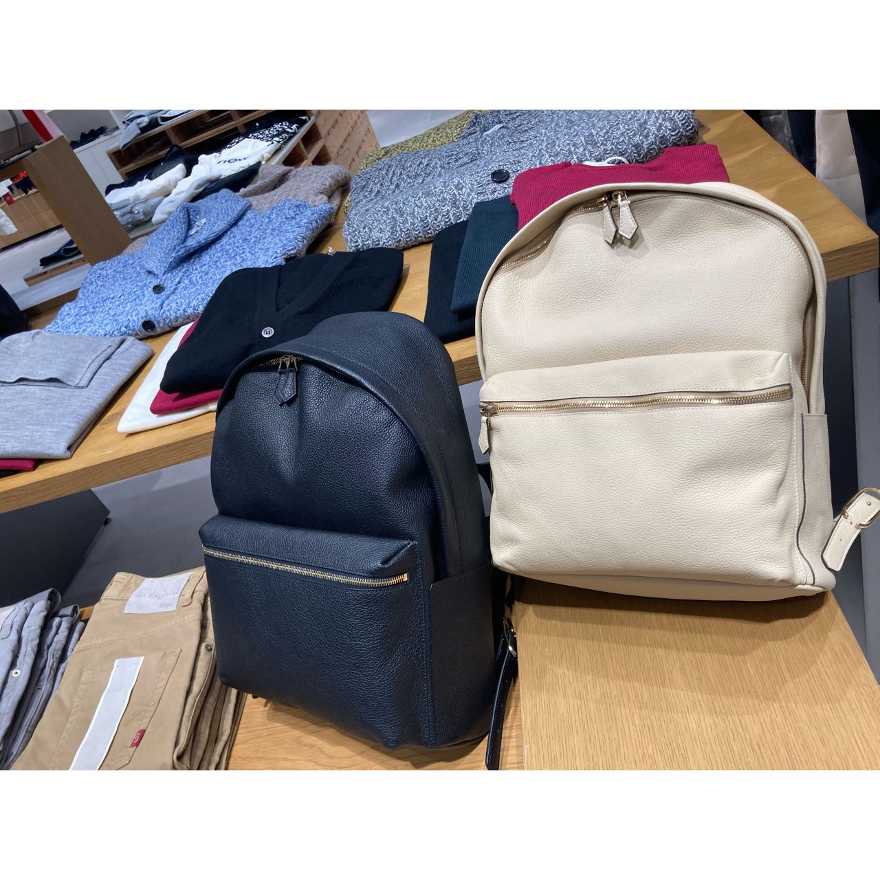 ジャケットの上に着てもお洒落なダウンベストや、着心地抜群で手触りがいいカシミヤ100%ニット、コットン素材でストレッチがしっかり入っていて履きやすいデニムパンツ、持ち手が天然皮で使うほど味が出るbagにリュックなど多くの商品が入荷してます✨