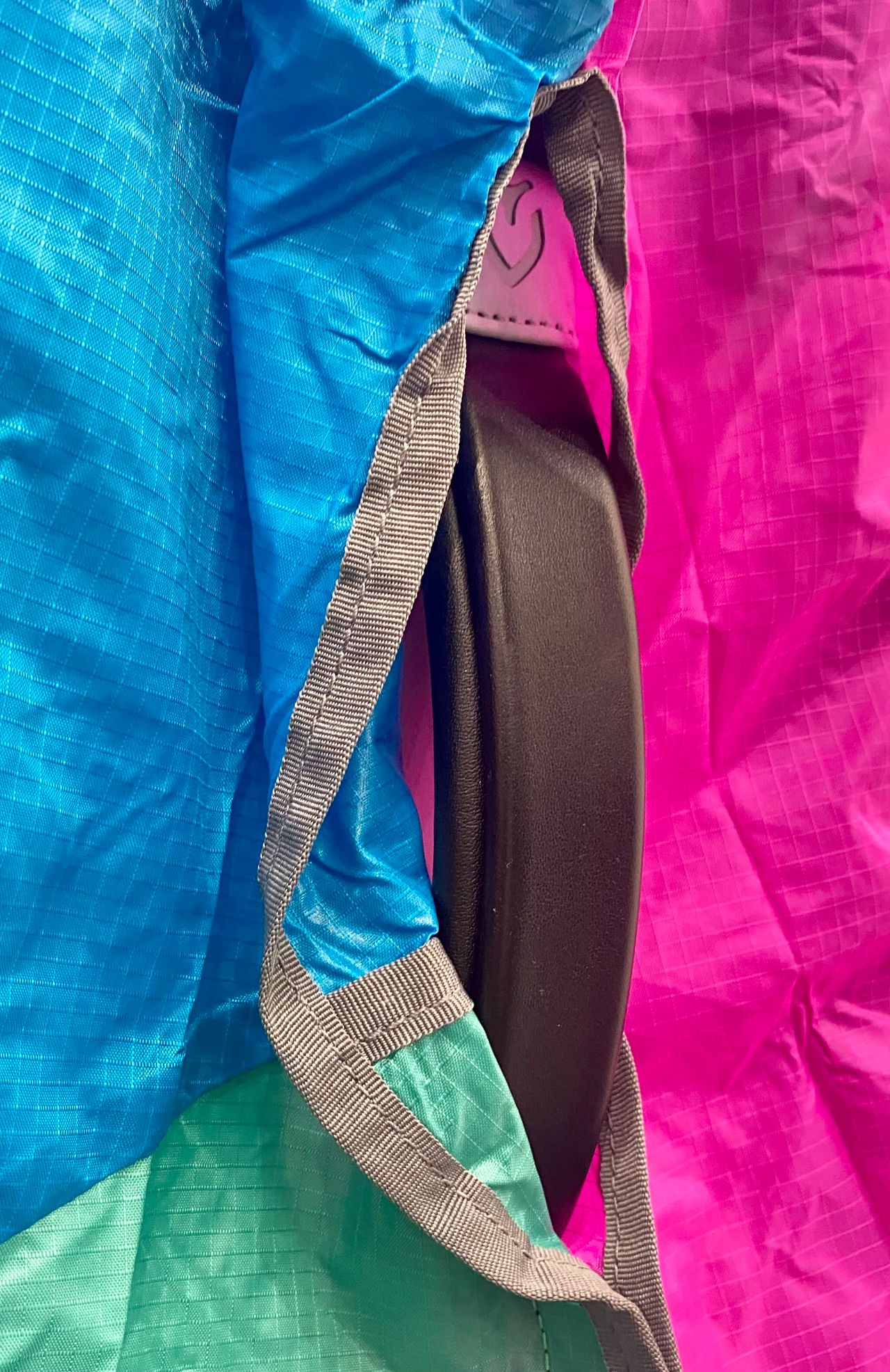 使わないときは小さく畳んで、キャディバックに引っ掛けておくと便利ですね