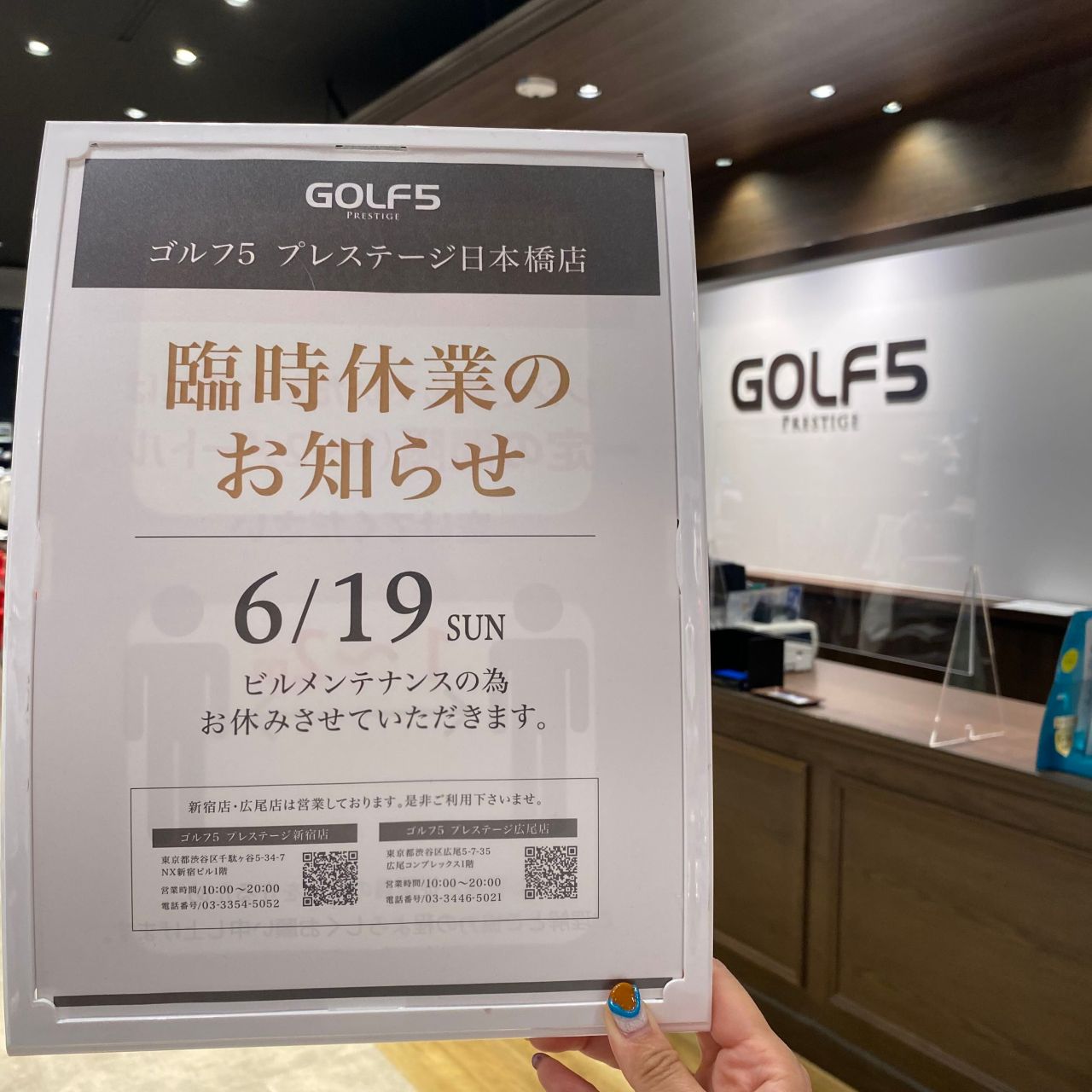 【定休日のお知らせ】ゴルフ5プレステージ日本橋店