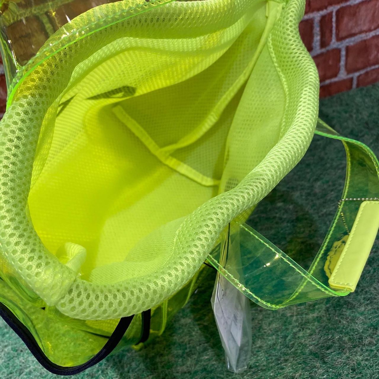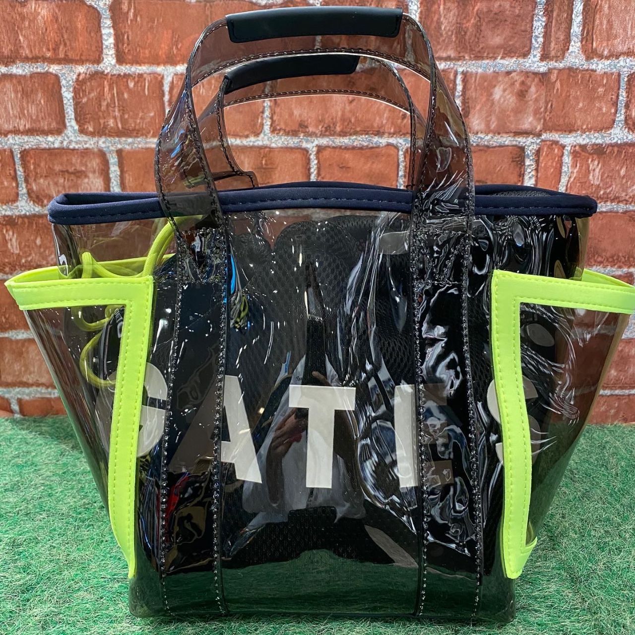 それぞれ単体での使用が楽しめるクリア素材で、中身が見やすいバッグとメッシュの巾着バッグを組み合わせて作られています!