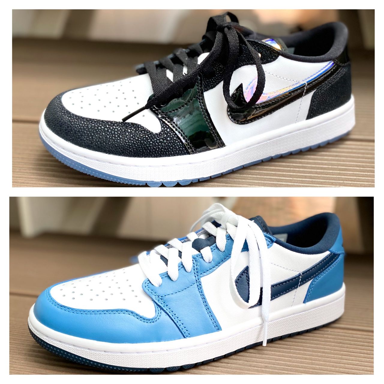 ブラックのシューズは、所々に施されたオーロラカラーが魅力!