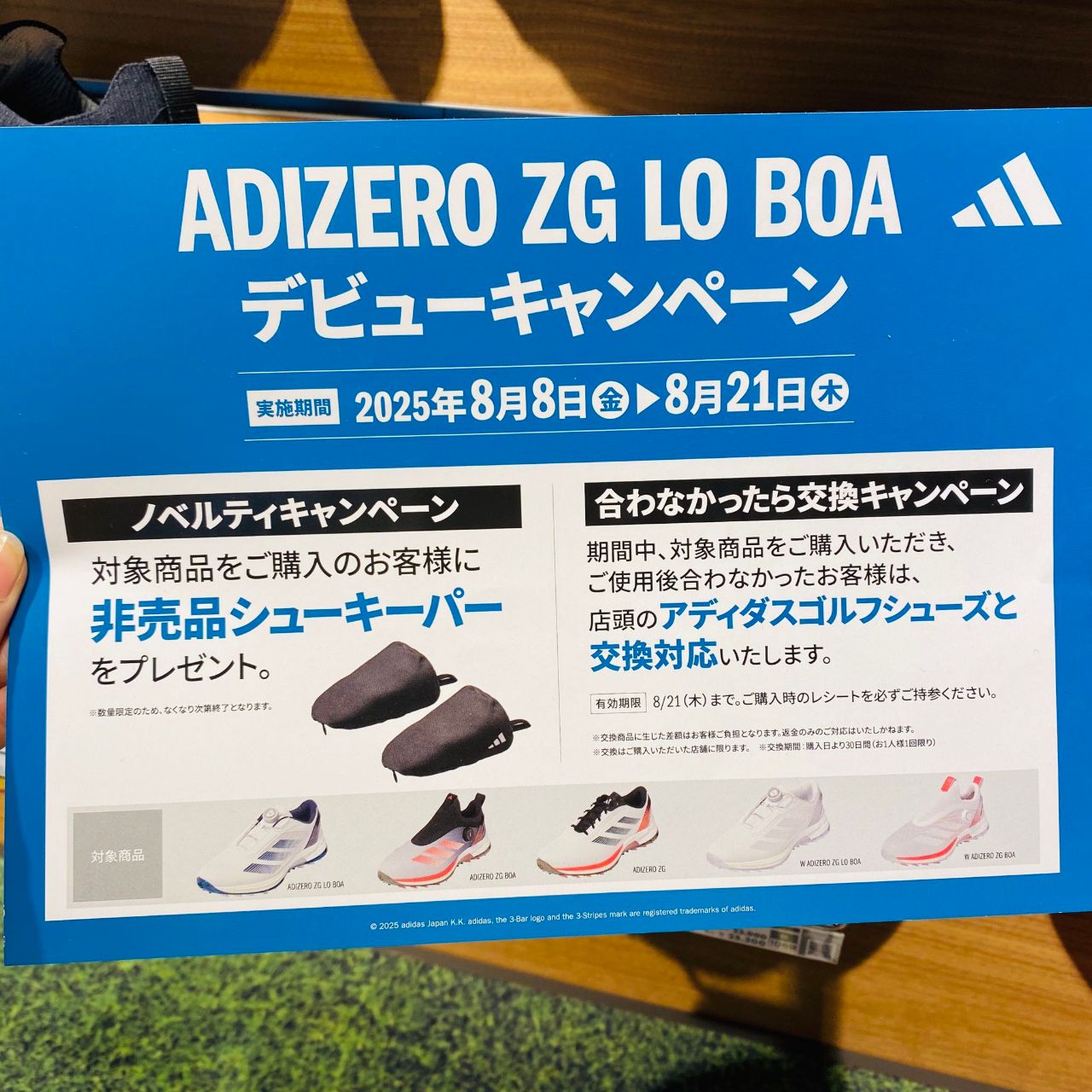 また、期間中ご購入いただいた商品がご使用後合わなかったお客様は、店頭のアディダスゴルフシューズと交換対応いたします❣️