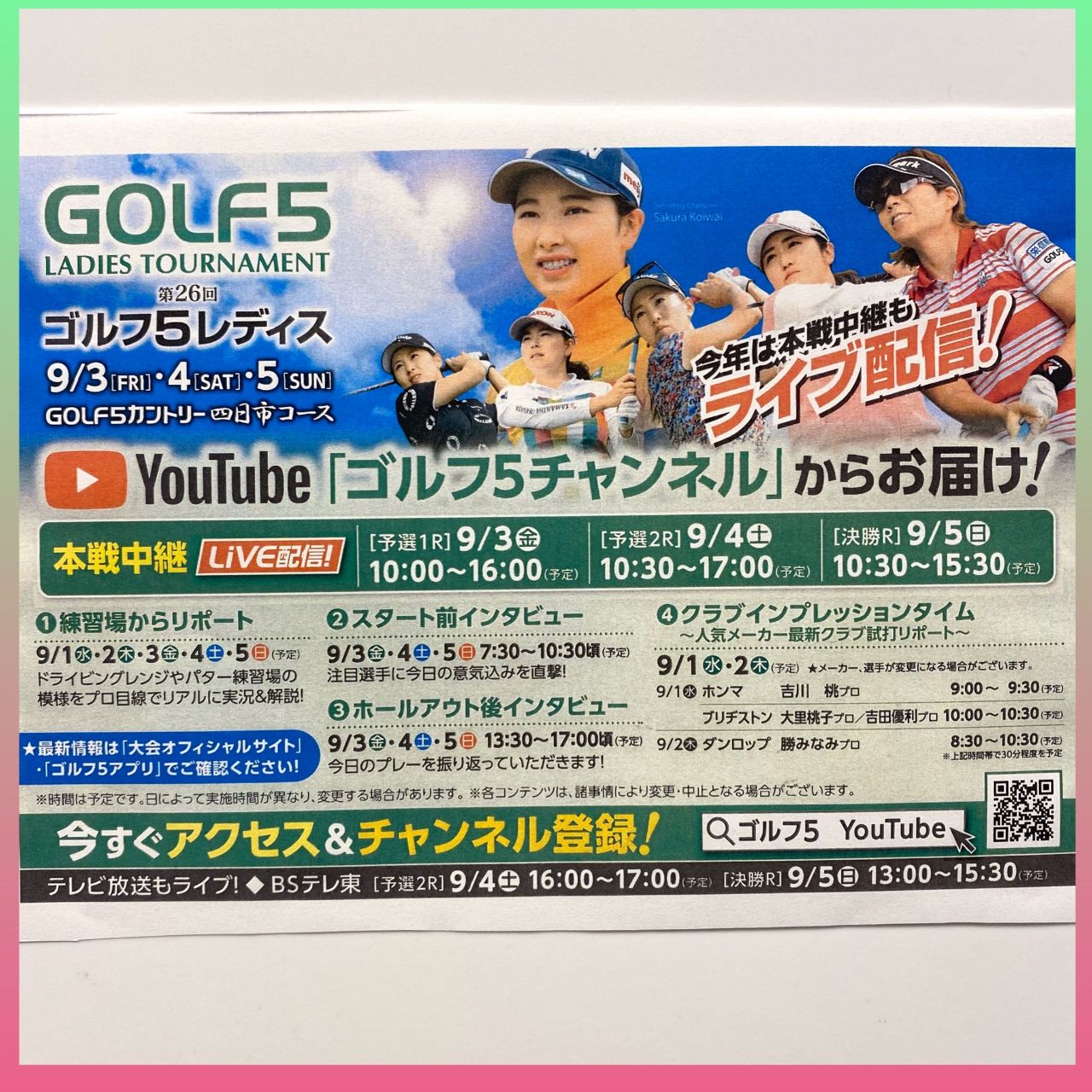 YouTube【ゴルフ5チャンネル】からライブ中継でお届け(*^◯^*)